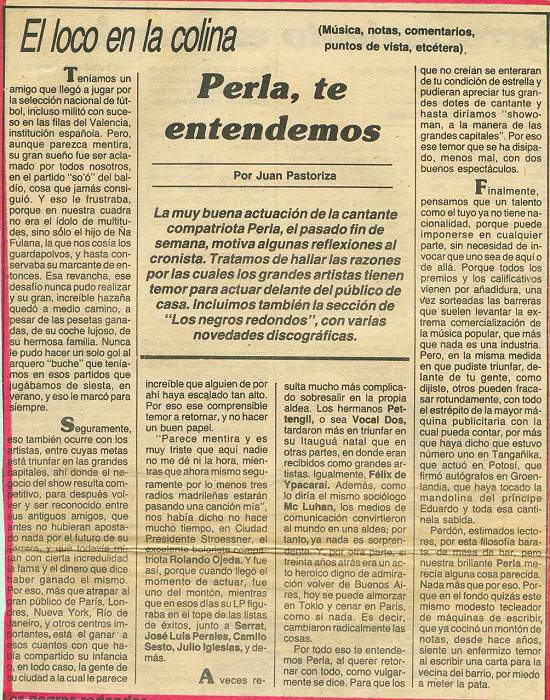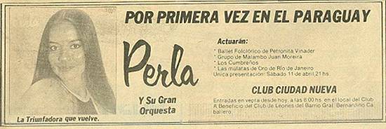 cantora conhecida pelo nome artístico Perla, nasceu no Paraguai, mas desde 1970 está no Brasil e desde 1990 se radicou em Santos. Em seu