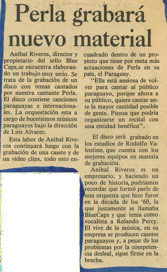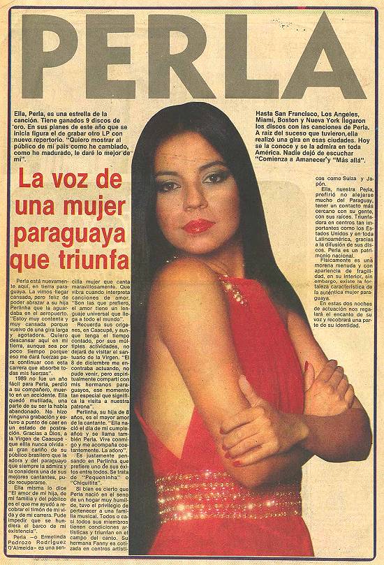 cantora conhecida pelo nome artístico Perla, nasceu no Paraguai, mas desde 1970 está no Brasil e desde 1990 se radicou em Santos. Em seu