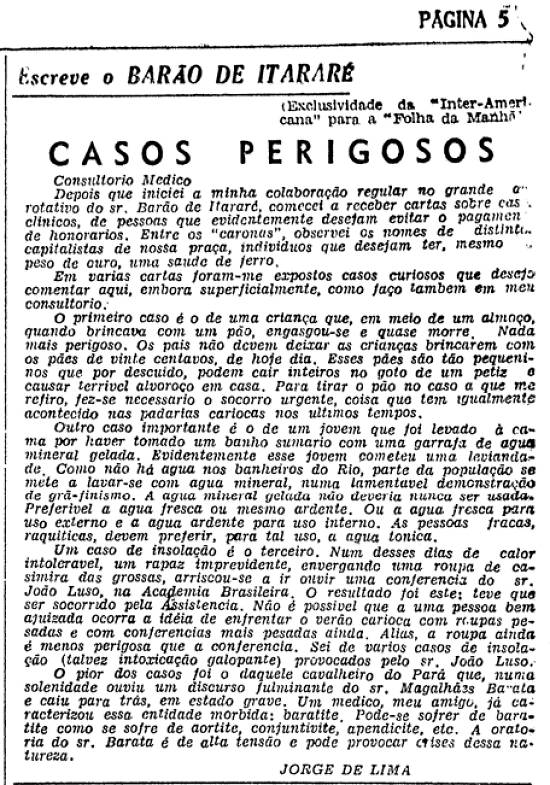 Este comentário do humorista satírico brasileiro que ficou conhecido como o Barão de Itararé foi publicado no jornal paulistano Folha da Manhã de quinta-feira, 28 de março de