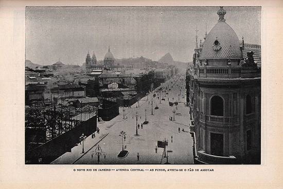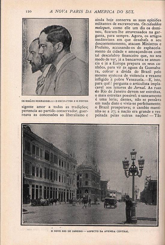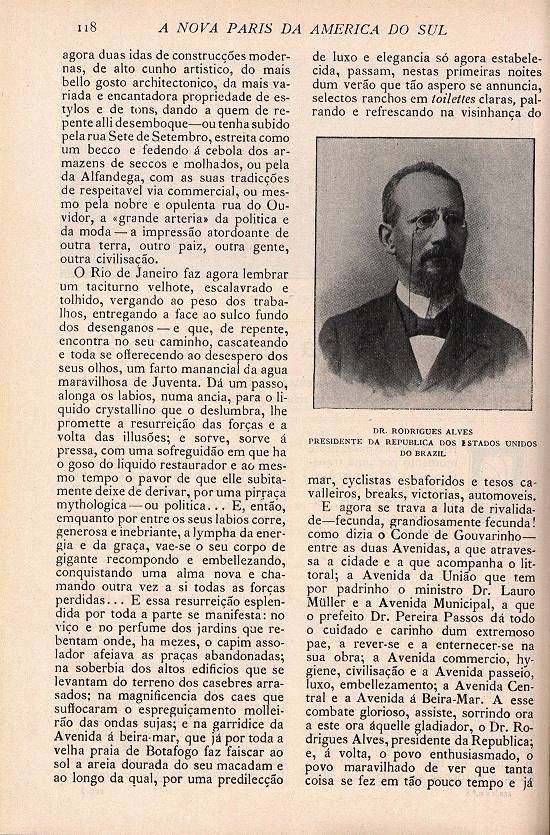 da União que tem por padrinho o ministro dr. Lauro Müller e a Avenida Municipal, a que o prefeito dr. Pereira Passos dá todo o cuidado e carinho dum extremoso pai, a se rever e a se enternecer na sua obra; a Avenida comércio, higiene,
