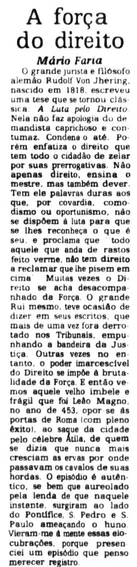 Artigo "A força do Direito", publicado em A Tribuna em 22/11/1978, página 13: