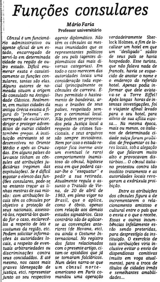 Artigo "Funções consulares", publicado em A Tribuna em 17/5/1981, página 30: