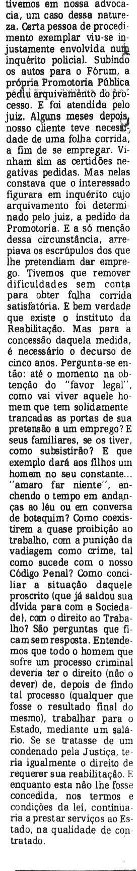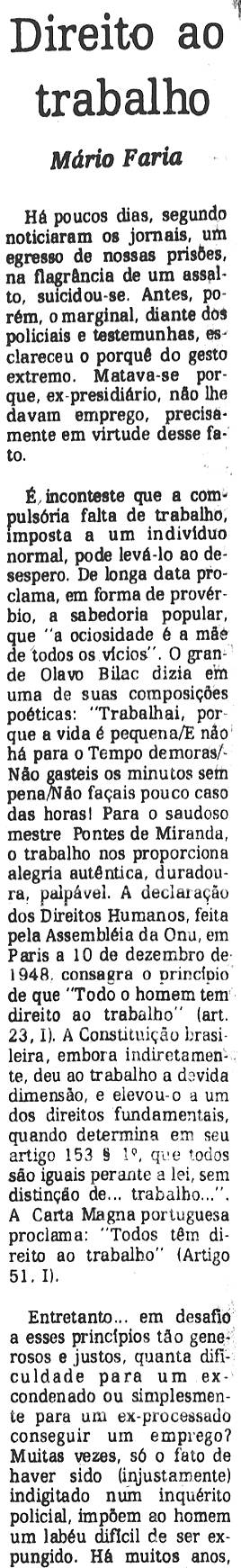 Artigo "O Direito ao Trabalho", publicado em A Tribuna em 23/9/1981, página 16: