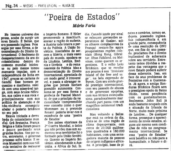 Artigo "Poeira de Estados", publicado em A Tribuna em 18/10/1981, página 34: