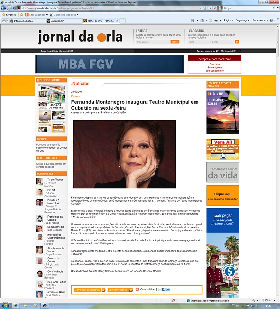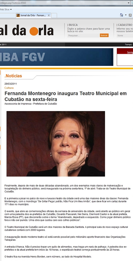 Atriz Fernanda Montenegro inaugura Teatro Municipal em Cubatão neste 1º de abril