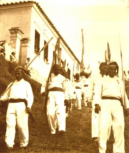Outras armas eram o facão enterçado do tipo sorocabano, porque tinha Sorocaba como seu