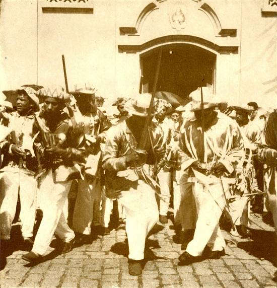 deste século (N.E.: século XX), às danças baianas dos Quicumbres e Quilombos, executadas por negros que simulavam combates entre escravos