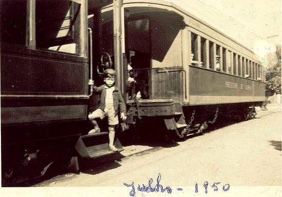 verifica na lateral do carro de passageiros. A foto mostra um dos carros sem lanternin, em operação, e mostra Cláudio Zucchini, primo do pesquisador