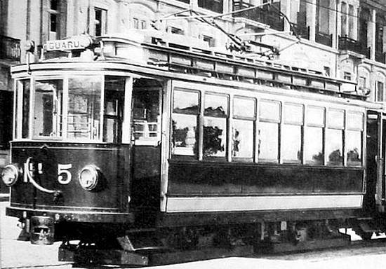 antiga (depois os bondes da EFCJ ganharam faixas brancas, como o nº 5 acima