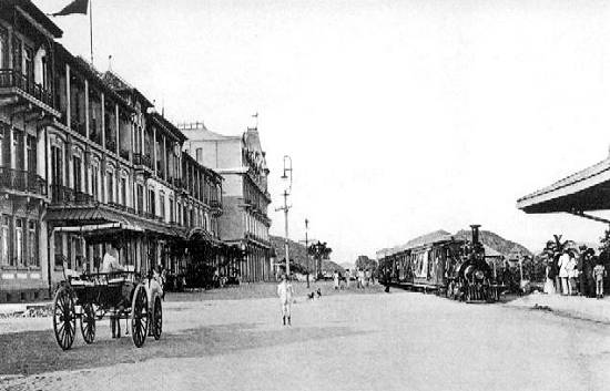 ainda disponíveis sobre o transporte ferroviário (depois substituído por bondes) entre a estação de