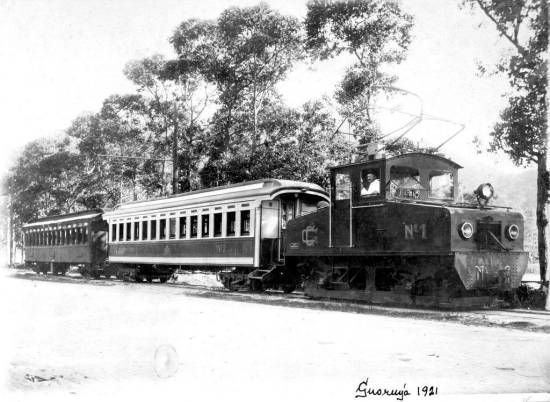 do Tramway do Guarujá. Segundo o pesquisador Antônio Gorni, "pela conexão nos fios suspensos parece que a foto foi tirada perto da subestação