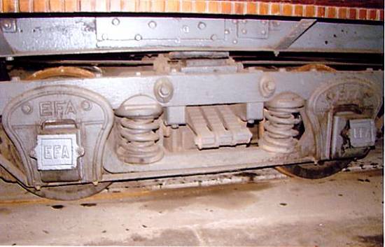 Trucks originais dos vagões transferidos de Guarujá para a EFCJ, cerca de 2008