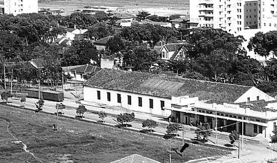 A foto de 1903. Ao fundo, o Morro do Maluf; à direita, a Praia de Pitangueiras