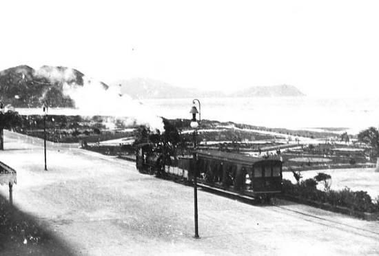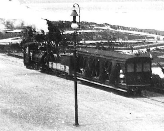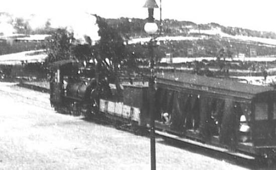 Outro corte da mesma foto de 1903. Note-se a locomotiva a vapor tracionando a vagoneta de cargas
