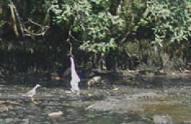 das margens, avistamos bandos de socós-caranguejeiros (Nyctanassa violacea), um notável habitante dos manguezais, predador de caranguejos.