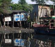 Palafitas debruçam-se sobre a franja do manguezal, lançando ali toda a sorte de esgoto e lixo doméstico. Por todo o rio, pode-se ver sacos de lixo