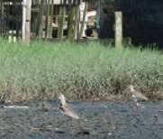 Mais adiante, um grande bando de maçaricos-de-perna-amarela (Tringa flavipes) também se