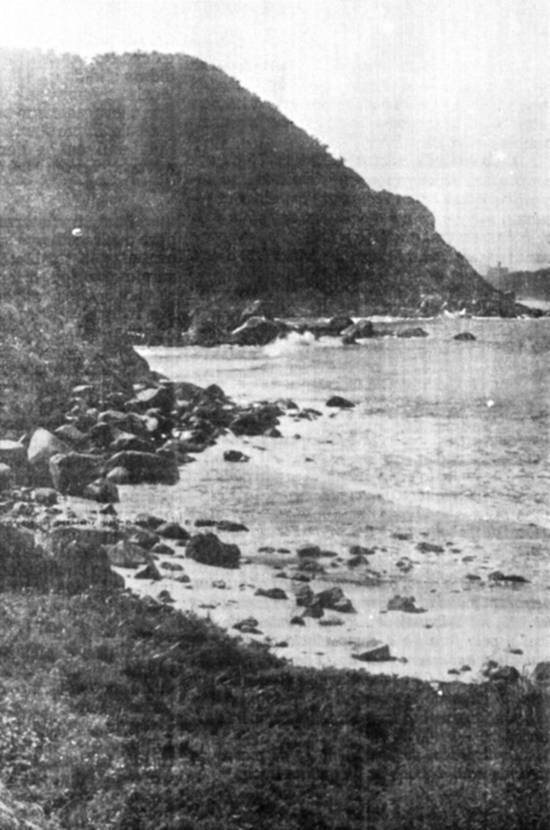 Comando da AD/2. No morro estão as construções que visavam a defesa da costa, com elevadores e túneis escavados na rocha e com quatro peças de