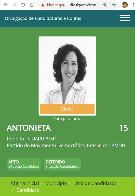 Foto da prefeita Maria Antonieta no site da Prefeitura de Guarujá