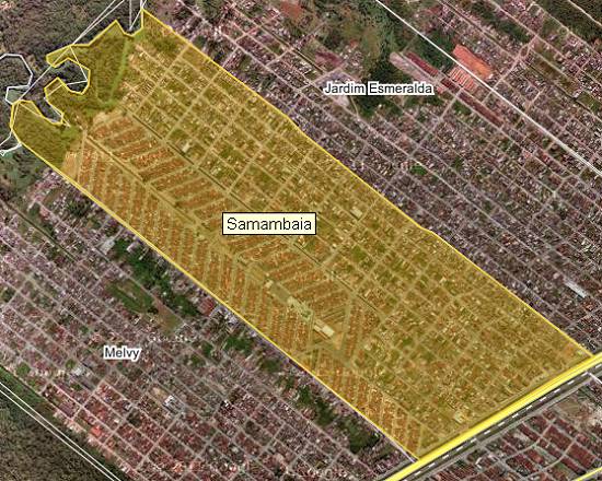 SP-55, divisa do loteamento Jardim Samambaia com faixa particular, Rio Preto, Rio Branco e Avenida José Leonardo de Carvalho.". |
