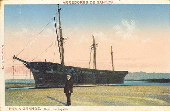 encalhavam em suas praias, atraindo a atenção dos então bem poucos moradores e mais raros ainda banhistas, como neste caso, em que um navio "naufragado", movido a vela e com casco de madeira, ilustra um cartão postal da Union Postale Universelle,