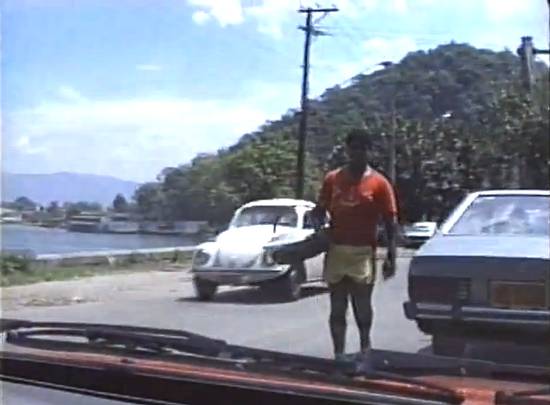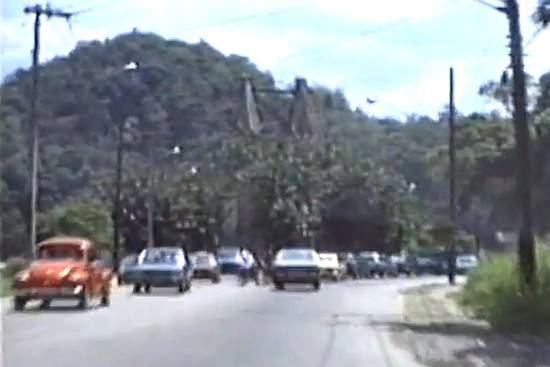 Via Imigrantes, chegando a Praia Grande, por onde passeou, com seu carro e sua filmadora, passando pela torre de televisão de A Tribuna e pelo então futuro Palácio das
