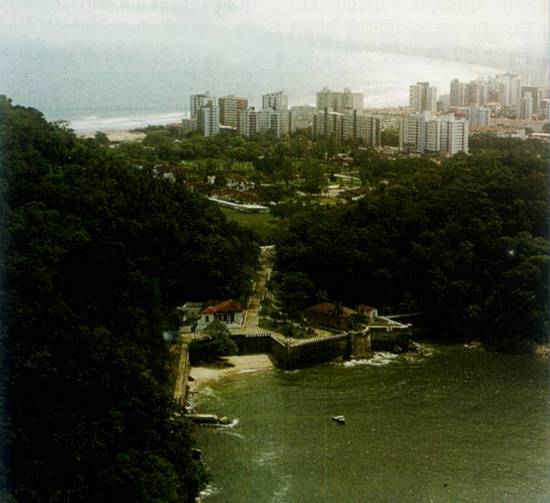 Santos, situada à entrada da sua barra, a não ser que consideremos também como entrada da mesma barra a projeção montanhosa do Monduba. Dizia o