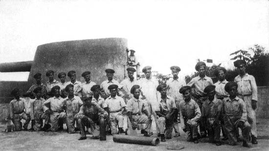 e ali usado até o início da década de 1940 - e sua guarnição. O canhão disparava 5