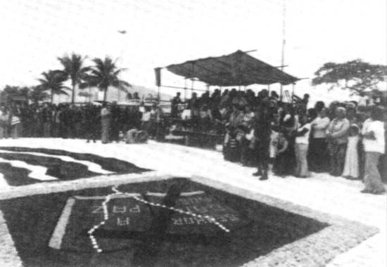 "tapete" teve nada menos que 20 quadros. O trânsito foi impedido a partir da manhã do dia 4, nos cerca de 800 metros cobertos pela procissão, que