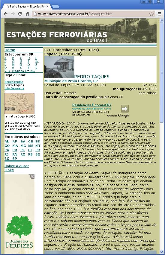 ferrugem, com dormentes de madeira podres e presos por cravos expostos" (Pedro Cunha, A Tribuna, Santos, SP, 07/2004). "No meio do caminho, fizemos um retorno para fotografar o que restou dessa estação. Depois de horas e horas de estudos e