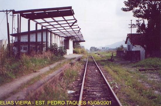 A ESTAÇÃO: A estação de Pedro Taques foi inaugurada como parada em 1929, com a quilometragem 27,450, já pela Sorocabana. Com o tempo desenvolveu-se ao seu redor um bairro que acabou designando a atual rodovia SP-55, que passa a seu lado,