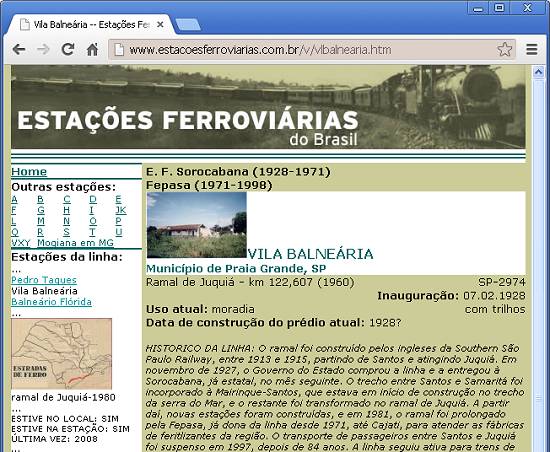 A ESTAÇÃO: Inaugurada, já pela Sorocabana, em 1928, como "parada Villa Balnearia", construída e doada à ferrovia pela "Cia. de Melhoramentos de Villa Balnearia", recebendo a quilometragem original de 30,508. Fica hoje ao lado da SP-55, no