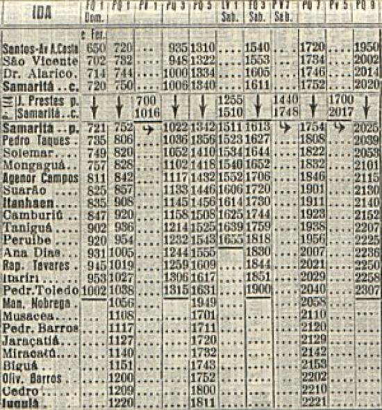 Horários do trem Santos-Juquiá: vários por dia em 1962