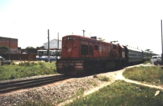 O trem de passageiros chegando em Mongaguá, em 1986