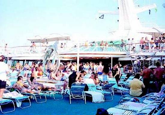 de comprimento do navio, com duas piscinas de água salgada, quatro
