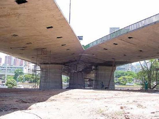 são realizados na parte inferior do viaduto, o trânsito sobre