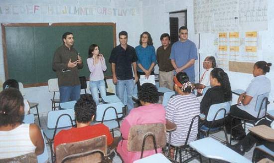 de bairros carentes da Baixada Santista, ministrando palestras sobre direito
