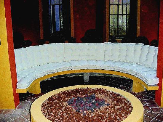 para reflexão em seus bancos circulares aquecidos por uma lareira
