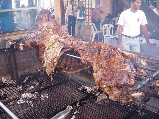 A cada 15 dias, é assado o tradicional boi no rolete Foto: Divulgação