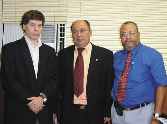 Marcos, o vereador Nilson e o diretor da Câmara, José Raimundo