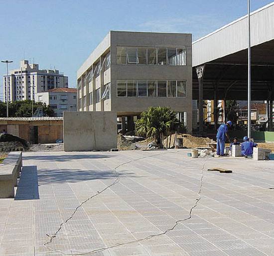 foi concretada e recebe acabamento. Ela inicia no entorno da praça