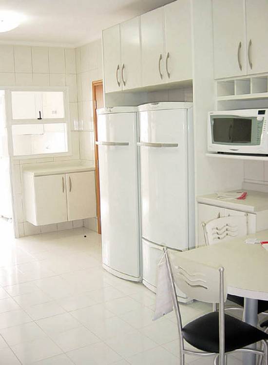 na sala e dormitórios, na cor bege; na cozinha e área de