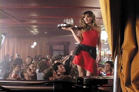 Barcelona, Gisele representou uma garçonete e segurou, pela primeira
