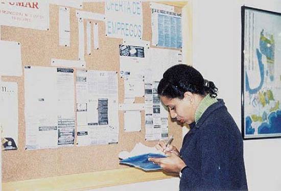 de um mural com ofertas de empregos na Baixada Santista. A renovação