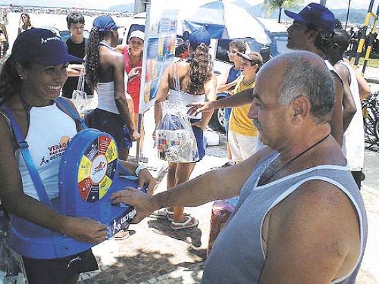 de brindes aos turistas e à comunidade. "Nossa intenção