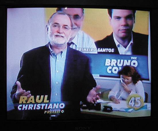 e na TV, de segunda a sábado, dos candidatos a vereador e prefeito.