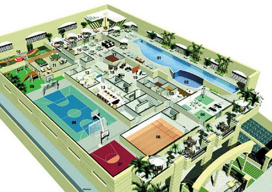 de lazer, localizada no segundo mezanino com 19 espaços diferentes,