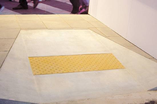 com marcação podo-táctil, apresentada em recente exposição