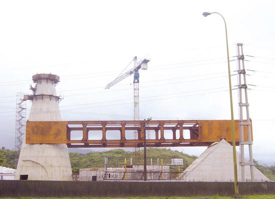 duas partes por meio de guindastes. Uma das torres, onde funcionará