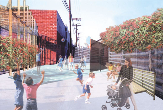 de equipamentos em viela, em bairro de Los Angeles Foto: Divulgação |